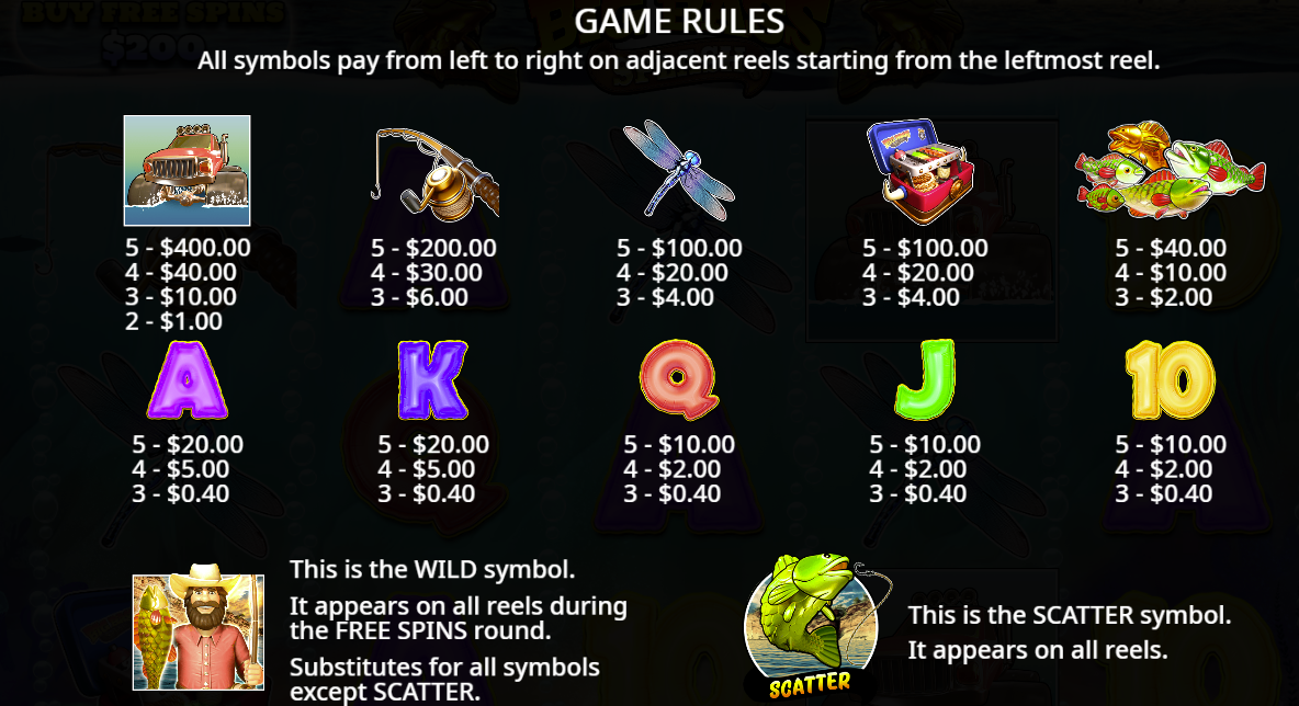 • Sticky Fisherman Wild: During free spins, Fisherman Wild sticks to reel 5 for guaranteed collections